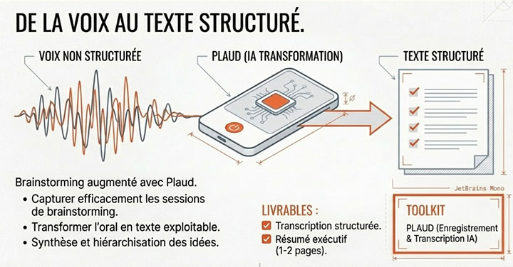 Session 1 — 9h00 à 11h00 : Brainstorming augmenté avec Plaud