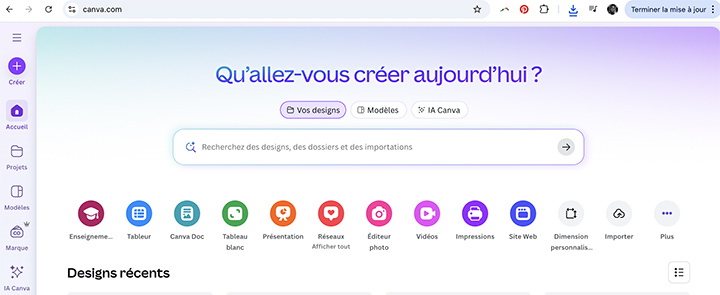 - Canva : créer facilement des visuels professionnels (posts, stories, affiches, présentations) avec un kit de marque cohérent et réutilisable.