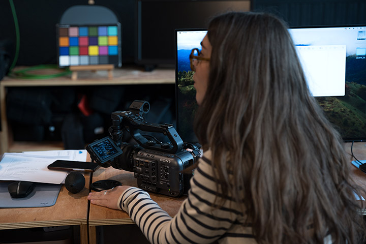1 station de montage par stagiaire, 4 caméras grand capteur (3 Sony FX6 et 1 FX9).